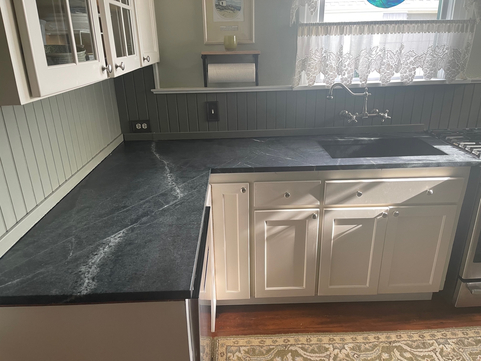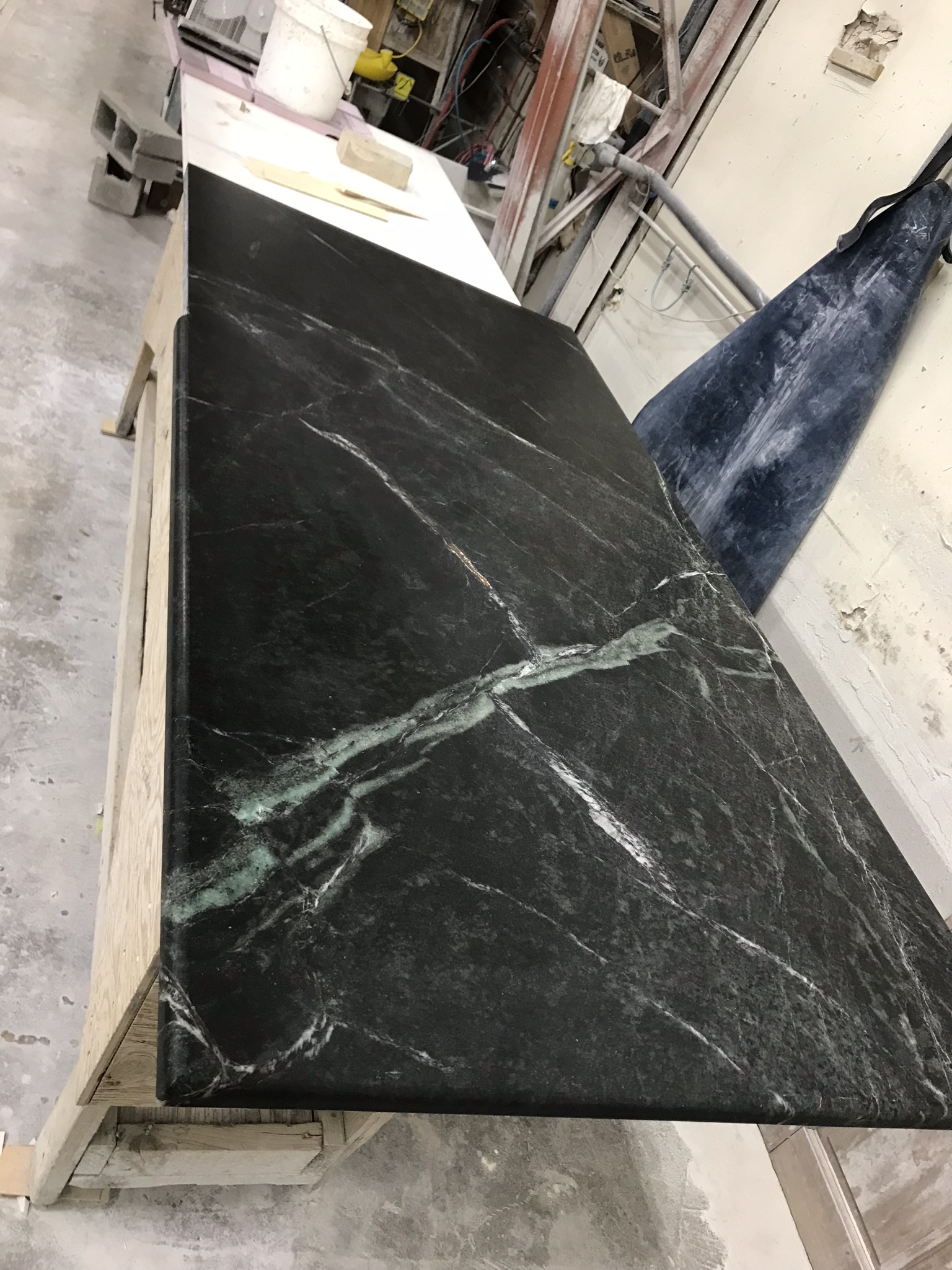 Meet one of the most enchanting Brazilian Beauties you’ve ever seen. We measure this one between 3-3.5 on the moh’s scale. With its soothing blend of blue green jeweled tones, it evokes the tranquil allure of the Caribbean Sea. A true testament to the raw elegance and organic grace only Mother Nature can create. This is considered a gray soapstone, however in some areas can lean green in natural lighting.
